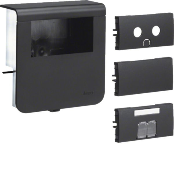 Geräteträger leer für Tragsteggeräte, inklusive Blindblende, 2x RJ45-Zentralscheibe und BK/SAT-Zentralscheibe Geräteträger leer für Tragsteggeräte zu SL 20x80mm graphitschwarz