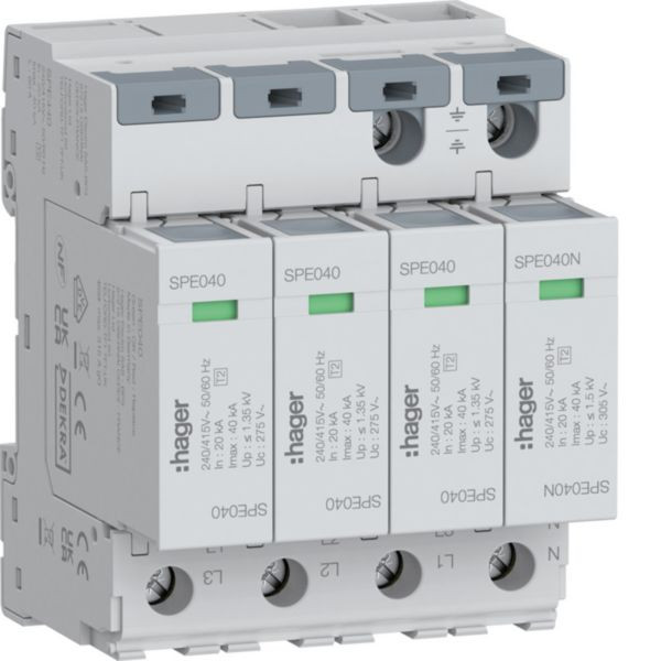 Überspannungsableiter 4P T2 TNS/TT Uc 275V In 20kA Imax 40kA