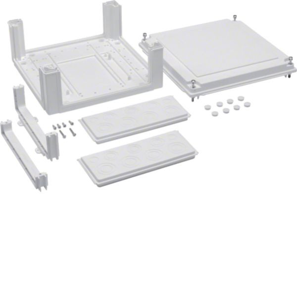 Der Einspeise-/Kabelanschlusskasten univers, Maße 324x307x149mm, bietet einen Schutzgrad von IP54 und gehört zur Schutzklasse II. Als leerer Kasten konzipiert, ermöglicht er flexible Erweiterungsmöglichkeiten für diverse Anwendungen. Ideal für sichere und geschützte Kabelverbindungen in Umgebungen mit Staub- und Spritzwasserschutz.