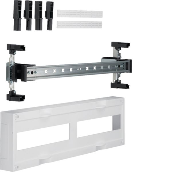 Der Baustein univers N 150x500mm für Reiheneinbaugeräte ermöglicht den waagerechten Einbau von 2x12 Platzeinheiten univers N Reihenklemmen oder Modulargeräten. Mit einer Bemessungsspannung von 3 Wechselstrom 690 Volt bei 50 Hertz und einer maximalen Stromstärke. Die Einheit beinhaltet serienmäßig plombierbare Berührungsschutzabdeckungen, verstärkt durch ein Gasinnendruckverfahren. Erfüllt die VDE-Normen gemäß DIN EN 61 439 -1, -2, -3 und DIN 43 870.