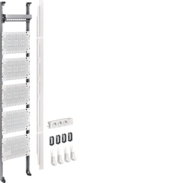 Das Komplettfeld Multimedia univers Z, 1350mm, 1-feldig, gemäß DIN 43870 und bietet eine werkzeuglose Schnellmontage. Es enthält ein Traggerüst mit Tragschienen, eine gelochte Montageplatte und ein montiertes, isoliertes Patchpanel für 12-Ports. Inklusive sind 3-fach Schutzkontaktsteckdosen, 90 Grad drehbar, Multimedia-Gerätehalter für VDI-Komponenten und Kabel-Halteklammern. Beachten Sie: Geschirmte Datenmodule RJ45 Kat. 6 und Verbindung zur Potentialausgleichsschiene sind nicht inkludiert.