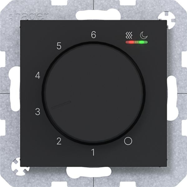 Temp.regler 230V/16A, Dreh-/Druckknopf, Heizung, A.x/C.x, n.schwarz matt