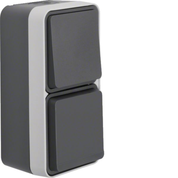 | Kurzbeschreibung | Kombination Wechselschalter/Steckdose Aufputz SCHUKO mit Klappdeckel W.1, grau |