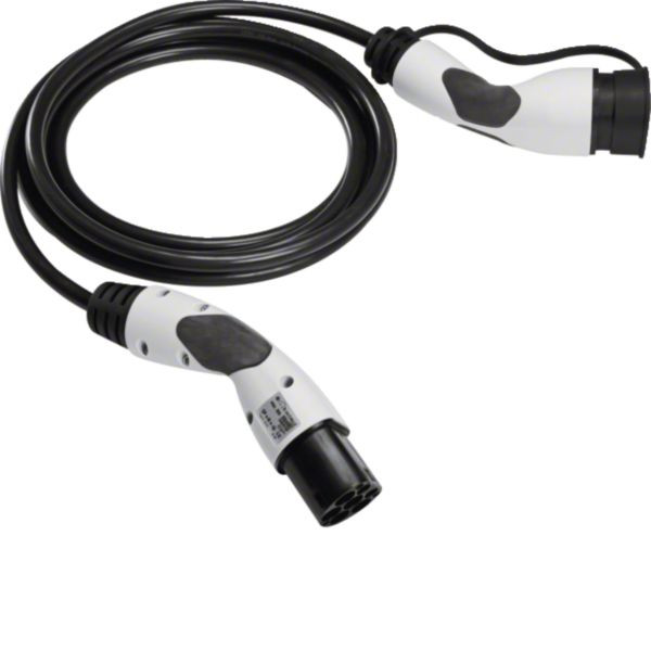 Ladekabel Mode 3 Stecker Typ2 + Typ2 bis 20A 3-phasig L=5m schwarz. Ladekabel nach IEC 62196-2 für Hausladestationen bestehend aus Ladekabel mit Kupplung (Typ 2, Fahrzeugseite) und Kupplung mit Typ 2 (Ladestationsseite). Hinweise: Leitung nur kompatibel mit Hager Ladestationen.