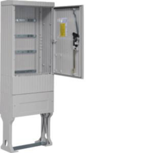 Kabelverteilersäule, ZAS, Baureihe 175, mit Sammelschienensystem, 4 x E-Cu.Kabelverteilersäule nach DIN EN 61439, Schutzart IP 44, mit Eingrabsockel, aus glasfaserverstärktes Polyester FS 833.5 nach DIN EN 14598. Kabelverteilersäule mit Sammelschienen-System zum Einbau für NH-Sicherungslastschaltleisten. Profiliertes Gehäuse im Rippendesign. Mit Sammelschienen-System 4-polig E-Cu 30 x 6 mm. Tür mit Öffnungswinkel 180 Grad bei freiem Stand und 90 Grad bei angereihten Gehäusen. Rechte Tür ist aushängbar. Schließung mit Schwenkhebel und Drei-Punkt-Basküleverschluss, Einfachschließung mit Profilhalbzylindern. Die Belüftung erfolgt über labyrinthartig ausgebildete Lüftungskanäle und ist durch Eindringen von Fremdkörpern stochersicher. Eingrabsockel und Kabelverteilersäule bilden eine Einheit. Ein Bodenrost ist empfohlen. Zur Betauungsvermeidung ist der Sockel bis zur Höhe der Kabelbefestigungsschiene innen mit Sockelfüller aufzufüllen.