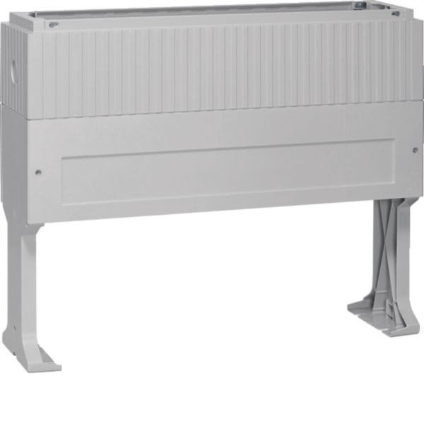 Der Eingrabsockel KVS Größe 2, Höhe 900 mm, bietet eine robuste Konstruktion mit einem profilierten Rippendesign. Ausgestattet mit einer Befestigungsschiene aus Winkelstahl (40 x 40 x 3 mm) ermöglicht er eine effektive Zugentlastung durch Bügelschellen. Seitliche, vorgestanzte Öffnungen bieten Installationsflexibilität und sind mit einer Abdeckung (d = 55 mm) verschließbar. Ein Sockelfüller verhindert Betauung im Inneren. Für erhöhte Standfestigkeit wird ein Bodenrost empfohlen.