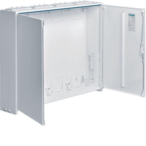 gebaut nach DIN VDE 0603, Teil 1, Maße nach DIN 43870,Farbe RAL 9010 (reinweiß), für AP, UP und teilversenkte Montage, Tür frontbündig, wahlweise links und rechts anschlagbar, ab Breite 800 mm Doppeltür Zählerschrank, univers Z, 800x1050x205 mm, Schutzklasse II, 240 Platzeinheiten
