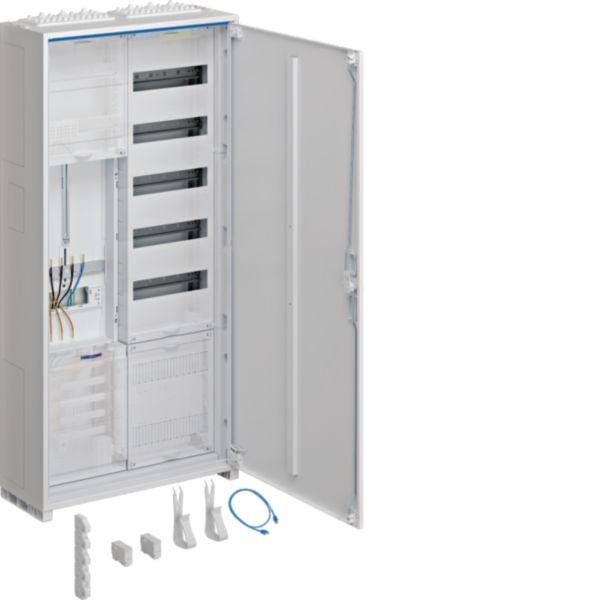 Der Zähler-Komplettschrank univers Z mit einem Zählerplatz für 3-Punkt Zählerplatz und Abschlusspunkt Zählerplatz (APZ) bietet eine integrierte Verteilung VT5. Mit einer Höhe von 1100mm 2-feldrig eignet sich der Schrank für die Aufputz-Montage. Dieses Modell gewährleistet eine effiziente Energieverteilung und einfache Installation in Wohngebäuden. Der Schrank entspricht den aktuellen Sicherheitsnormen und ist für den Einsatz in verschiedenen Umgebungen konzipiert.