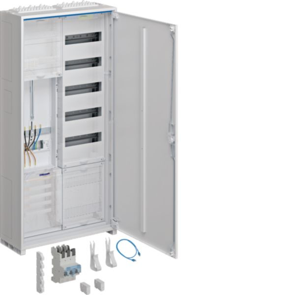 | Kurzbeschreibung | Komplettschrank, univ.Z 1ZP, 3-Pkt, VT5, APZ, SLS 63A, ESA, 1100x550x205mm, IP44 |