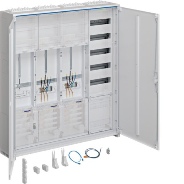 Entdecken Sie den 4-feldigen ZB342U25LS universZ Komplettschrank mit SK II, 2 Zählerplätzen und 5-reihigem Verteilerfeld mit APZ-Raum. Mit den Abmessungen von 1100x2500 mm bietet er Elektroinstallateuren viel Spielraum für Ihre Installationen. Der ZB342U25LS ist universell und flexibel einsetzbar. Durch seine robuste Bauweise ist eine lange Lebensdauer garantiert. Diese Entscheidung bedeutet Sicherheit und Effizienz für Ihre Projekte.