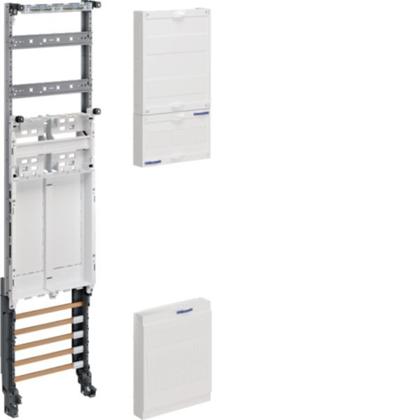 Das Komplettfeld univers Z mit dem Maß H=1050mm ist ein einfeldiges Zählerfeld inklusive Sammelschienen. Dieses Modell ermöglicht eine flexible und erweiterbare Energieverteilung, ideal für moderne Elektroinstallationen.