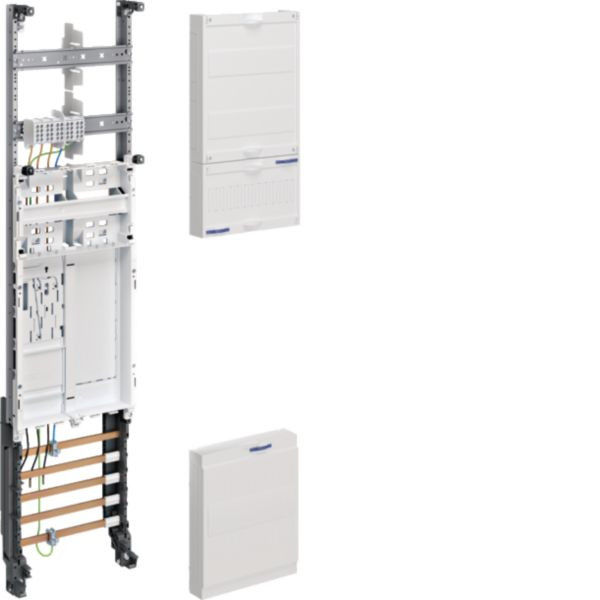 Komplettfeld univers Z, BKE-I für eHZ, bietet eine platzsparende Lösung für Zählerplätze gemäß DIN VDE 0603. Mit einer Höhe von 1050mm und 16mm² Querschnitt ermöglicht es eine einfache Schnellmontage durch das Rast-System. Es ist vorverdrahtet und entspricht den VNB TAB-Bestimmungen. Das Zählerfeld ist mit einer Befestigungs- und Kontaktiereinrichtung ausgestattet und unterstützt 5-polige Hauptleitungsabzweigklemmen