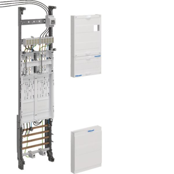 Das Komplettfeld univers Z mit 2 Zählerplätzen (ZP) und einer Bauhöhe von 1050mm ist für die Installation in PV-Überschusseinspeisung oder Kaskadenverdrahtung ausgelegt. Das 1-feldige Zählerfeld mit eHZ-Anschlusskassetten BKE-I und ist vorbereitet für BKE-I-Datenschnittstelle OKK. Ideal für effiziente Energiemanagementsysteme in Wohn- und Geschäftsgebäuden.