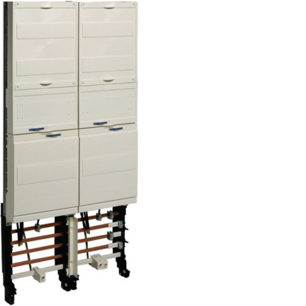 Das Komplettfeld univers Z mit 2 Zählerplätzen, bestückt mit BKE-I und OKK, bietet eine effiziente Lösung für die Energieverteilung. Es enthält eine 7-polige Steuerklemme und eine 5-polige Hauptleitungsklemme. Dieses 2-feldige Zählerfeld ist ideal für die strukturierte und sichere Unterbringung von Messtechnik und bietet durch seine modulare Bauweise Flexibilität in der Installation und Wartung.