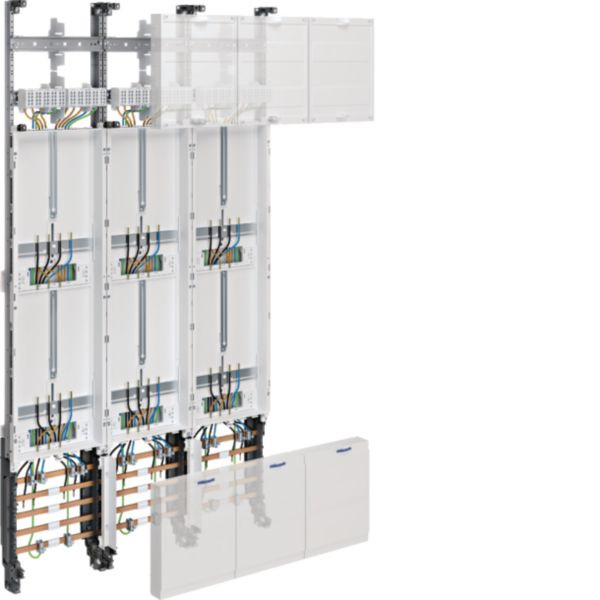 Das Komplettfeld univers Z, 1350 mm Höhe, bietet 6 Zählerplätze in einer 3-Feldigen-Konfiguration, speziell für den Einsatz in Mitteldeutschland konzipiert. Es ermöglicht eine effiziente Energieverteilung und -messung, unterstützt durch eine robuste Bauweise und einfache Montage. Ideal für den Einsatz in Mehrfamilienhäusern oder gewerblichen Anlagen.