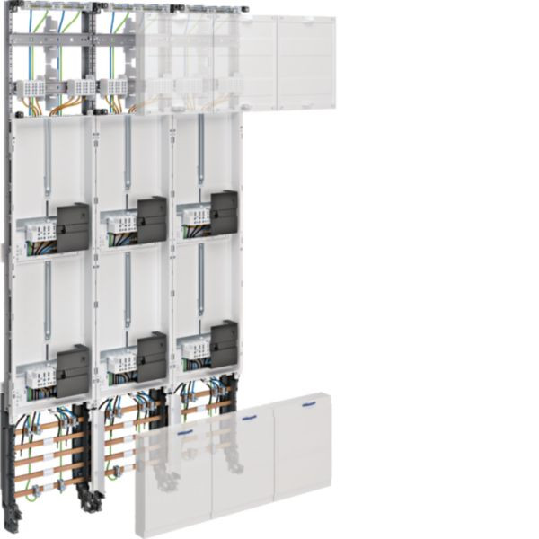 Bei dem ZL53W8N handelt es sich um ein 3-feldiges Komplettfeld mit den Abmessungen 1350x750 mm und 6 Zählerplätzen, Zählersteckklemme. Die ideale Lösung für die Leistungsverteilung in verschiedenen Installationen und daher die optimale Lösung für Elektroinstallateure. Durch die robuste Bauweise sind langlebigkeit und Zuverlässigkeit garantiert, die Schutzart IP22 bietet die nötige Sicherheit. Dieses Modell sorgt für eine effiziente und sichere Stromversorgung in bewährter Hager-Qualität.