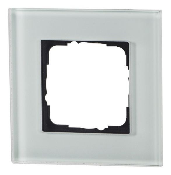 Design-Glasrahmen, mint, 1-fach, für Einsätze 55x55mm, Echtglas, rückseitig bedruckt, mit anthrazitfarbigem Trägerrahmen, außerordentliche Verarbeitungsqualität, UV-beständig, kratzfest, edles, zurückhaltendes Design, Montage in Hoch- und Querformat möglich, passend für Einsätze von folgendem Schalterprogramm: Busch-Jaeger balance SI