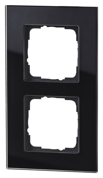 Design-Glasrahmen, schwarz, 2-fach, für Einsätze 55x55mm, Echtglas, rückseitig bedruckt, mit anthrazitfarbigem Trägerrahmen, außerordentliche Verarbeitungsqualität, UV-beständig, kratzfest, edles, zurückhaltendes Design, Montage in Hoch- und Querformat möglich, passend für Einsätze von folgendem Schalterprogramm: Busch-Jaeger balance SI