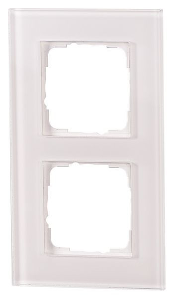 Design-Glasrahmen, weiß, 2-fach, für Einsätze 55x55mm, Echtglas, rückseitig bedruckt, mit weißem Trägerrahmen, außerordentliche Verarbeitungsqualität, UV-beständig, kratzfest, edles, zurückhaltendes Design, Montage in Hoch- und Querformat möglich, passend für Einsätze von folgendem Schalterprogramm: Busch-Jaeger balance SI