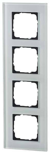 Design-Glasrahmen, mint, 4-fach, für Einsätze 55x55mm, Echtglas, rückseitig bedruckt, mit anthrazitfarbigem Trägerrahmen, außerordentliche Verarbeitungsqualität, UV-beständig, kratzfest, edles, zurückhaltendes Design, Montage in Hoch- und Querformat möglich, passend für Einsätze von folgendem Schalterprogramm: Busch-Jaeger balance SI