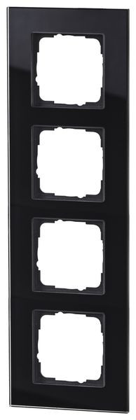 Design-Glasrahmen, schwarz, 4-fach, für Einsätze 55x55mm, Echtglas, rückseitig bedruckt, mit anthrazitfarbigem Trägerrahmen, außerordentliche Verarbeitungsqualität, UV-beständig, kratzfest, edles, zurückhaltendes Design, Montage in Hoch- und Querformat möglich, passend für Einsätze von folgendem Schalterprogramm: Busch-Jaeger balance SI