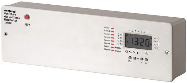 Funkempfänger 8-Kanal, Schaltleistung 4(2)A, Abmessungen 310 x 90 x 65 mm, Schutzart IP40, mit Echtzeituhr, Störungserkennung und Anzeige, Notbetrieb bei Störungen, in Verbindung mit Funksender Typ Instat 868-r1o oder Typ Instat+ 868 (nicht im Lieferumfang enthalten)