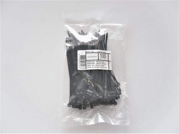 | Kurzbeschreibung | Kabelbinder 3,6 x 140 mm 100 Stück schwarz |