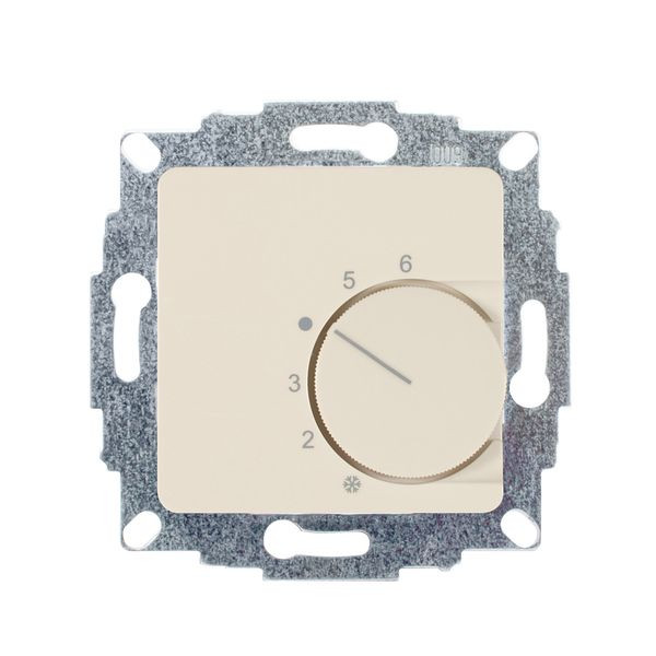 Raumtemperaturregler u.P., 230 V, einschl. Zentralscheibe 50x50mm, ohne Abdeckrahmen, Öffnerkontakt 10(4)A, für Stellantriebe stromlos geschlossen, Einstellbereich 5…30°C mit Bereichseinengung, Temperaturabsenkung, Berührungsschutzkappe, Farbe: cremeweiß glänzend, ähnlich RAL1013, passend in nahezu alle Schalterprogramme mittels Zwischenrahmen 50x50mm (nicht im Lieferumfang enthalten)