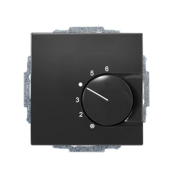 Raumtemperaturregler u.P., 230 V, einschl. Zentralscheibe, ohne Abdeckrahmen, Öffnerkontakt 10(4)A, für Stellantriebe stromlos geschlossen, Einstellbereich 5…30°C mit Bereichseinengung, Temperaturabsenkung, Berührungsschutzkappe, Farbe: anthrazit glänzend , passend für folgendes Schalterprogramm: Busch-Jaeger future, future-linear, solo, axcent, carat, dynasty und pur edelstahl