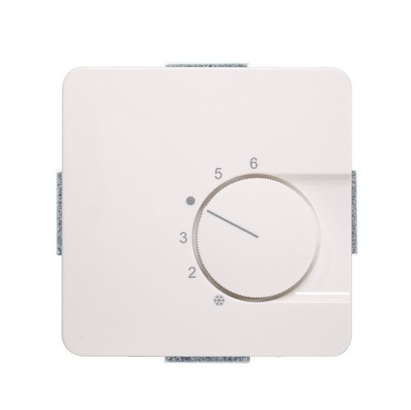 Raumtemperaturregler u.P., 24 V, einschl. Zentralscheibe, ohne Abdeckrahmen, Öffnerkontakt 4A UC, für Stellantriebe stromlos geschlossen, Einstellbereich 5…30°C mit Bereichseinengung, Temperaturabsenkung, Berührungsschutzkappe, Farbe: alpinweiß glänzend, ähnlich RAL9010, passend in folgende Schalterprogramme: Jung Serie CD 500, CD plus, CD 500 Aufputz