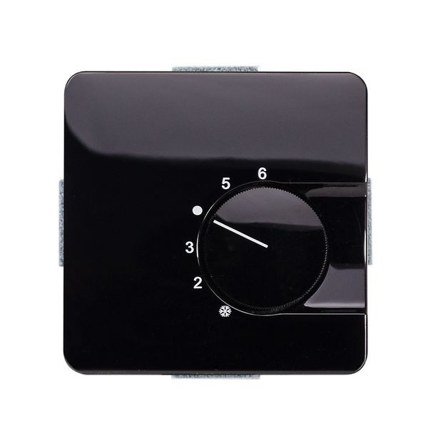 Raumtemperaturregler u.P., 230 V, einschl. Zentralscheibe, ohne Abdeckrahmen, für Stellantriebe stromlos offen und stromlos geschlossen, Triac-Ausgang für max. 5 Stellantriebe (3W elektromechanisch), ohne TA-Eingang, Einstellbereich 5…30°C mit Bereichseinengung, mit Berührungsschutzkappe, Farbe: schwarz glänzend, passend in folgende Schalterprogramme: Jung Serie CD 500, CD plus, CD 500 Aufputz
