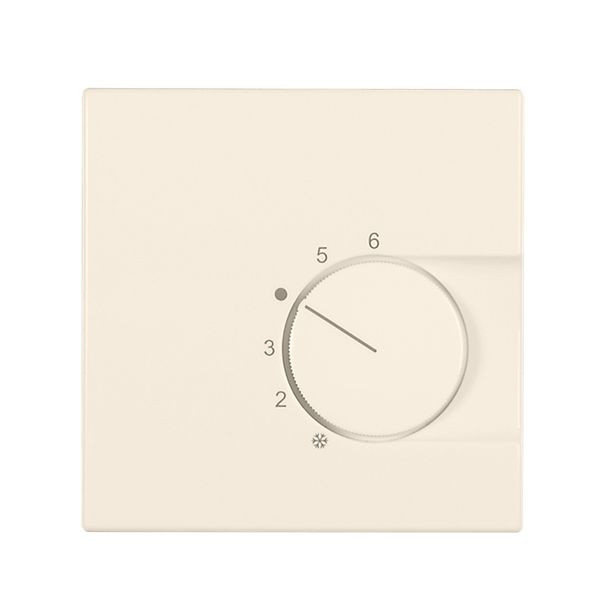 Raumtemperaturregler u.P., 230 V, einschl. Zentralscheibe, ohne Abdeckrahmen, Öffnerkontakt 10(4)A, für Stellantriebe stromlos geschlossen, Einstellbereich 5…30°C mit Bereichseinengung, Temperaturabsenkung, Berührungsschutzkappe, Farbe: cremeweiß glänzend, ähnlich RAL1013, passend in folgende Schalterprogramme: Jung Serie LS