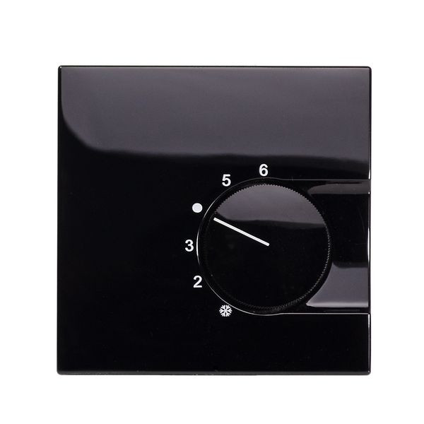 Raumtemperaturregler u.P., 230 V, einschl. Zentralscheibe, ohne Abdeckrahmen, Wechslerkontakt 10(4)A Heizen, 5(2)A Kühlen, für Stellantriebe stromlos geschlossen und stromlos offen, Einstellbereich 5…30°C mit Bereichseinengung, Temperaturabsenkung, Berührungsschutzkappe, Farbe: schwarz glänzend, passend in folgende Schalterprogramme: Jung Serie LS