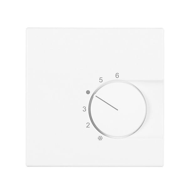 Raumtemperaturregler u.P., 24 V, einschl. Zentralscheibe, ohne Abdeckrahmen, Öffnerkontakt 4A UC, für Stellantriebe stromlos geschlossen, Einstellbereich 5…30°C, Temperaturabsenkung, Berührungsschutzkappe, Farbe: lotusweiß glänzend, ähnlich RAL9003, passend in folgendes Schalterprogramm: Merten D-Life