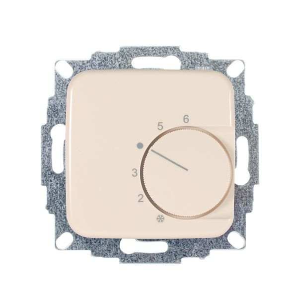 Raumtemperaturregler u.P., 230 V, einschl. Zentralscheibe, ohne Abdeckrahmen, Wechslerkontakt 10(4)A Heizen, 5(2)A Kühlen, für Stellantriebe stromlos geschlossen und stromlos offen, Einstellbereich 5…30°C mit Bereichseinengung, Temperaturabsenkung, Berührungsschutzkappe, Farbe: cremeweiß glänzend, ähnlich RAL1013, passend in folgendes Schalterprogramm: Busch-Jaeger Reflex SI, SI Linear (Duro 2000 SI)