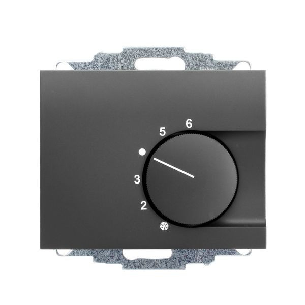 Raumtemperaturregler u.P., 230 V, einschl. Zentralscheibe, ohne Abdeckrahmen, Öffnerkontakt 10(4)A, für Stellantriebe stromlos geschlossen, Einstellbereich 5…30°C mit Bereichseinengung, Temperaturabsenkung, Berührungsschutzkappe, Farbe: anthrazit samt , passend in folgende Schalterprogramme: Berker K.1, K.5