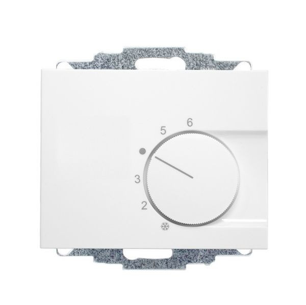 Raumtemperaturregler u.P., 230 V, einschl. Zentralscheibe, ohne Abdeckrahmen, Öffnerkontakt 10(4)A, für Stellantriebe stromlos geschlossen, Einstellbereich 5…30°C mit Bereichseinengung, Temperaturabsenkung, Berührungsschutzkappe, Farbe: polarweiß glänzend, ähnlich RAL9010, passend in folgende Schalterprogramme: Berker K.1, K.5