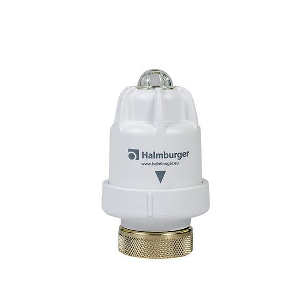Thermischer Stellantrieb 230 V, stromlos geschlossen, M30 x 1,5 mm, kleine kompakte Bauform, Schutzart IP54, Anzeige von Betriebszustand und Hubposition über Fenster, Handverstellung für Notbetrieb, für Überkopfmontage geeignet, Schließkraft 90 N, Hub 4,5 mm, einschl. 1,00 m Anschlussleitung