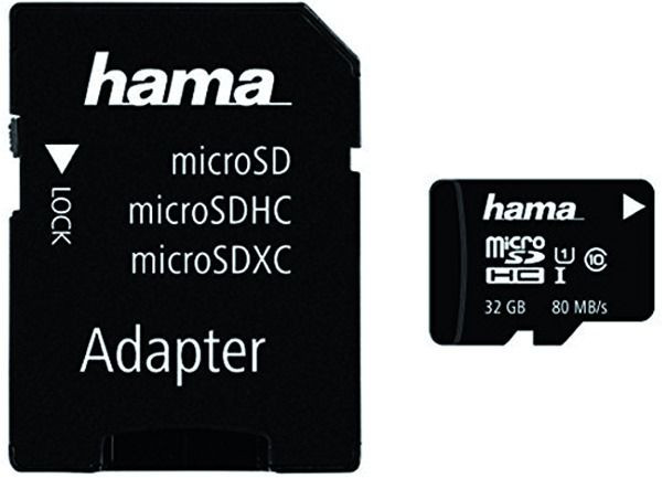 32GB Speichervolumen, Class10 (Schreibgeschwindigkeit 80MB/s), inkl. SD-Adapter