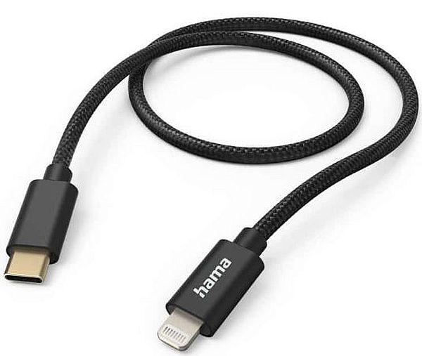 Ladekabel "Fabric", USB-C - Lightning, 1,5 m, Nylon, Schwarz, Hochwertiges Schnellladekabel, Geflochtene Kabelummantelung aus Nylon: strapazierfähig, lässt sich leicht aufwickeln, kein Kabelsalat