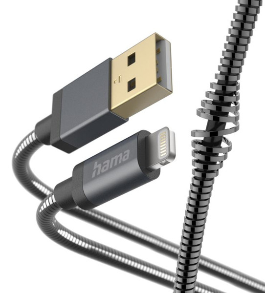 Ladekabel "Metall", USB-A - Micro-USB, 1,5 m, Metallmantel, Anthrazit, Schnellladekabel, bis zu 480 Mbit/s für High-Speed-Datenübertragung, vergoldete Stecker mit geringen Übergangswiderständen für eine sichere Signalübertragung