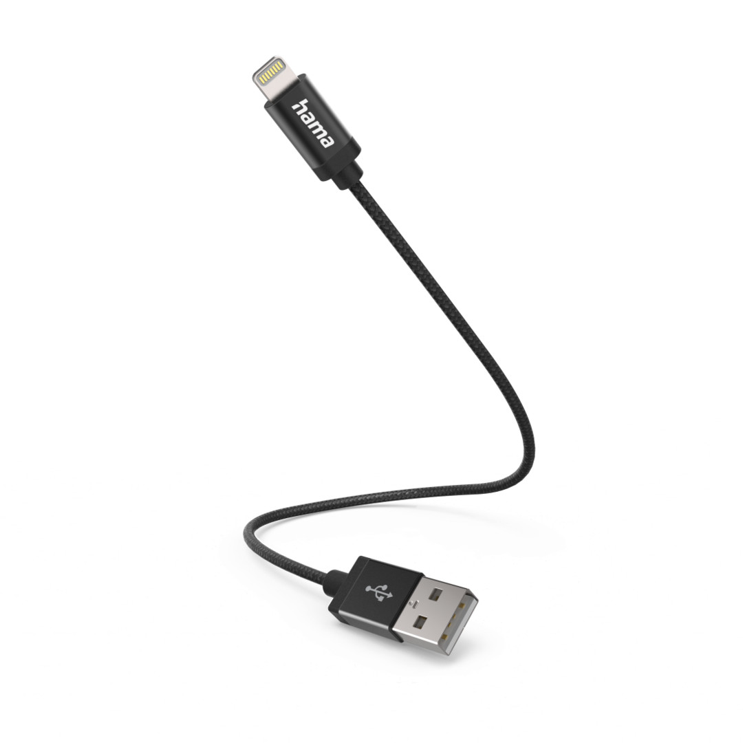 Schnellladekabel USB-A - Lightning, 0,2 m, Nylon, Schwarz, bis zu 480 Mbit/s für High-Speed-Datenübertragung