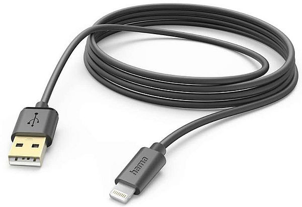 Schnellladekabel, USB-A - Lightning, 3 m, Schwarz, 480 Mbit/s für High-Speed-Datenübertragung