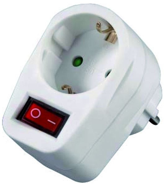 Schutzkontaktadapter, Ein-/Ausschalter, Kunststoffgehäuse