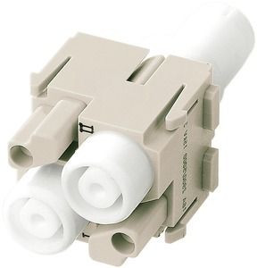 Han HV Modul, Doppelmodul, für Han E Crimpkontakte, Crimpanschluss, Buchse, Kontakte: 2, Leiterquerschnitt: 0,5...4 mm², Bemessungsstrom: 16 A, Polycarbonat / Teflon (PTFE), RAL 7032 (kieselgrau)