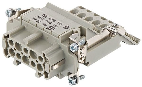 Einsätze, Anschlussverteiler, Käfigzugfederanschluss, Buchse, Polycarbonat (PC), RAL 7032 (kieselgrau), Bemessungsstrom: 16 A, Baugröße: 10 B, Kontakte: 10, Leiterquerschnitt: 0,14...2,5 mm², Kupferlegierung, versilbert