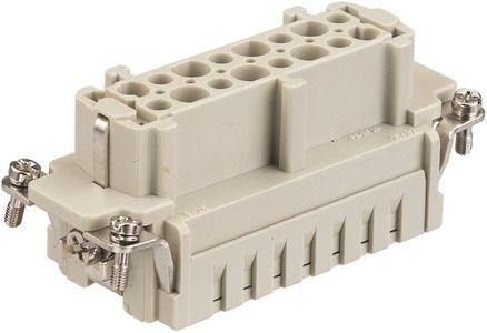 Einsätze, Käfigzugfederanschluss, Buchse, Polycarbonat (PC), RAL 7032 (kieselgrau), Bemessungsstrom: 16 A, Baugröße: 16 B, Kontakte: 16, Leiterquerschnitt: 0,14...2,5 mm², Kupferlegierung, versilbert
