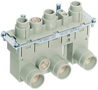 Einsätze, Axialschraub- / Schraubanschluss, Buchse, Polycarbonat (PC), RAL 7032 (kieselgrau), Bemessungsstrom: 200 A, Baugröße: 24 B, Kontakte: 5, Leiterquerschnitt: 35...70 mm² Power 0,5...2,5 mm² Signal 25...40 mm² PE, Kupferlegierung, versilbert