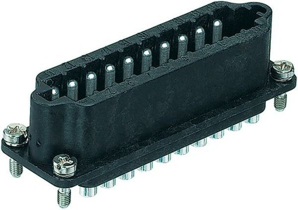 Einsätze, Lötanschluss, Stift, Polyamid (PA), schwarz, Bemessungsstrom: ?10 A, Baugröße: 16 A, Kontakte: 20, Leiterquerschnitt: 2,5 mm², Kupferlegierung, versilbert