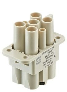 Einsätze, Axialschraubanschluss, Buchse, Polycarbonat (PC), RAL 7032 (kieselgrau), Baugröße: Han-Compact, Kontakte: 6, Leiterquerschnitt: 2,5...6 mm² 0,25...1,5 mm² Signal, Kupferlegierung, versilbert